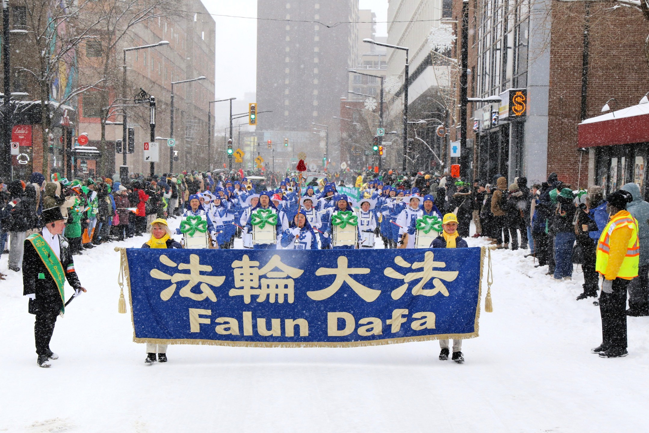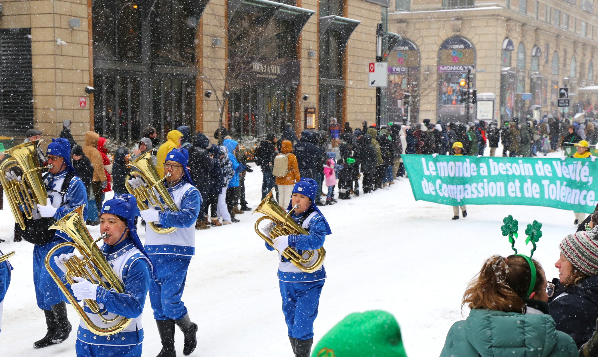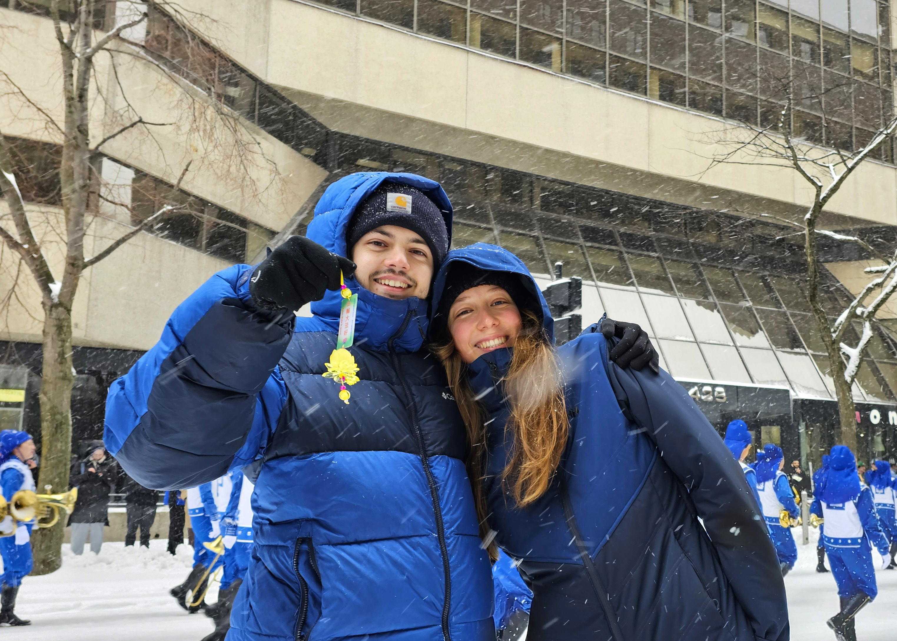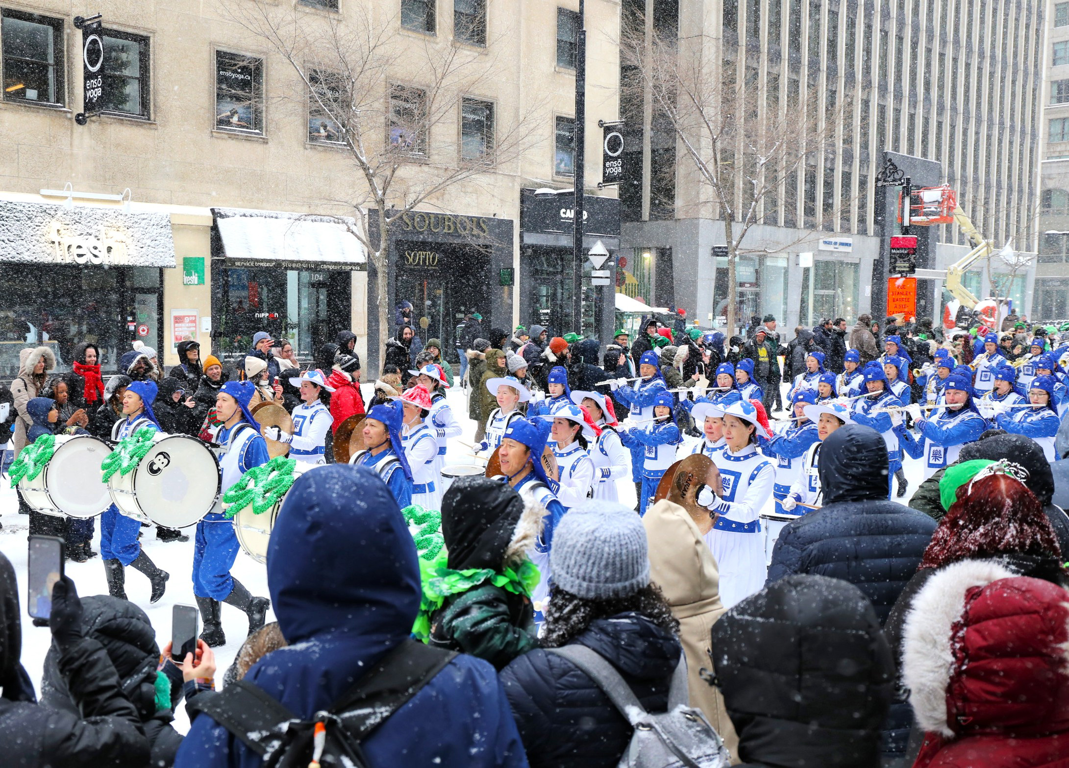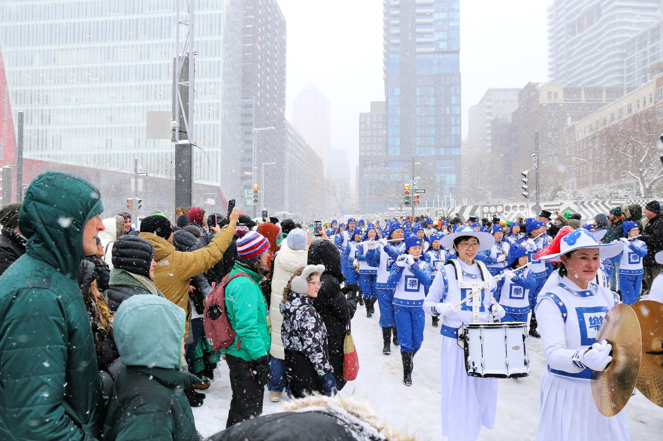 游行当天风雪交加,但人们的热情不减,九十二支花车、乐队和团体,从市中心圣-马修路口沿着梅桑纳夫大街向东行进。在二公里多长的游行路线中,观众反映热烈,当天国乐团经过时,人群中时不时发出“法轮大法”的喊声和欢呼声。
