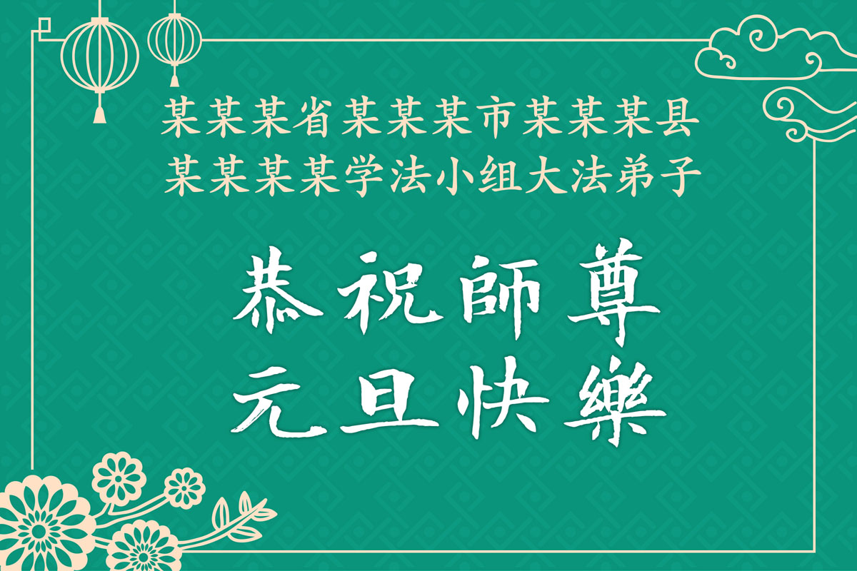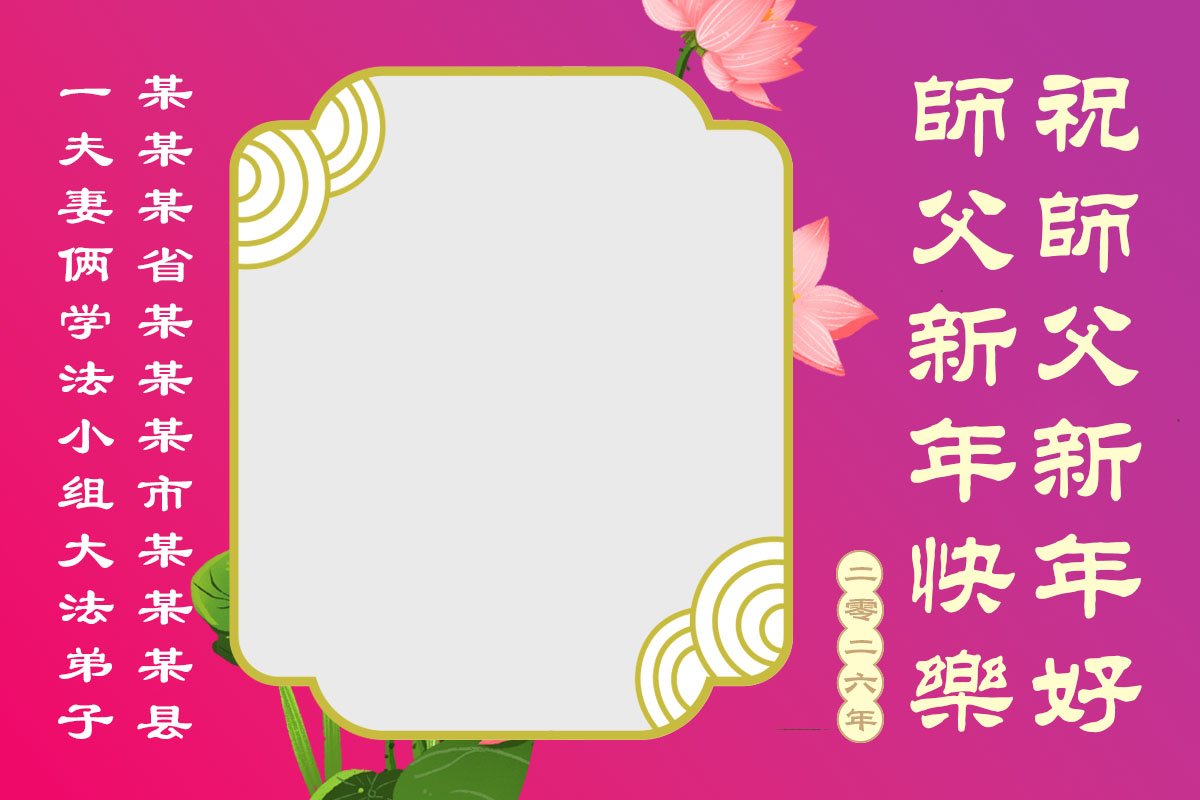 * 贺词落款(*30字以內,包括地区、谁、年月日。例如:河北省保定市一学法小组大法弟子,二零二五年一月一日)